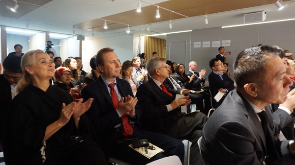 10月22日,在位于韩国首尔的中日韩三国合作秘书处,各国嘉宾观赏中国古琴演出。(首尔中国文化中心供图)