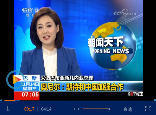 近日,巴新总理奥尼尔接受了央视记者的采访。奥尼尔在采访中表示,非常期待习近平主席的来访,期待通过此次国事访问和亚太经合组织系列会议,与中国进一步加强合作。