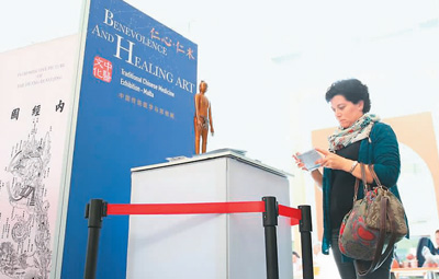 近日,“仁心·仁术”中国传统医学展在马耳他开幕,一名参观者在展览现场阅读资料。