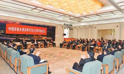 图为中国侨联庆祝改革开放40周年座谈会现场。