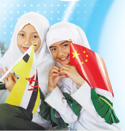 11月19日,文莱学生手持两国国旗,欢迎习近平主席来访。