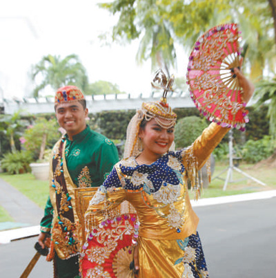 11月20日,菲律宾总统府外,当地艺术家用传统舞蹈欢迎习近平主席来访。