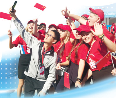 9月9日,中俄两国青少年在“海洋”全俄儿童中心欢聚。