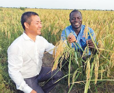 中尼两国技术人员分享水稻新品种培育成功的喜悦。中地海外集团绿色西非农业有限公司供图