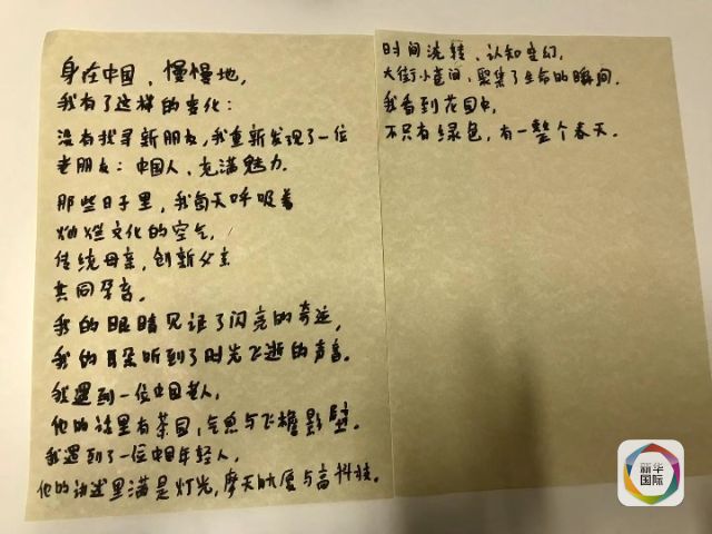 乔瓦尼写的中文诗。新华社记者李洁摄