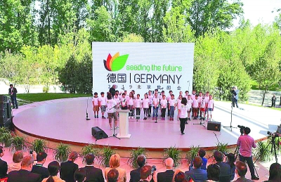 5月13日,游客在德国展园内参观。新华社记者 张晨霖摄