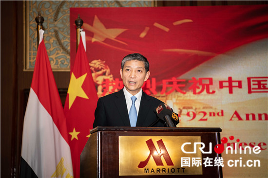 国际在线报道(中央广播电视总台记者 米春泽):7月28日,中国驻埃及大使馆在埃及首都开罗举行建军节招待会,隆重庆祝中国人民解放军建军92周年。中国驻埃及大使廖力强致辞,中国驻埃及大使馆代理武官符晓大校主持招待会。埃及军工生产国务部长阿萨尔、埃及国防部部长助理克什克少将、埃及外交部亚洲事务部长助理赛利姆大使等高级军政官员、各国驻埃使节和武官,以及前联合国秘书长加利遗孀等各界友好人士、华人华侨代表、中资机构代表、留学生代表500余人参加活动。