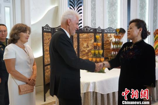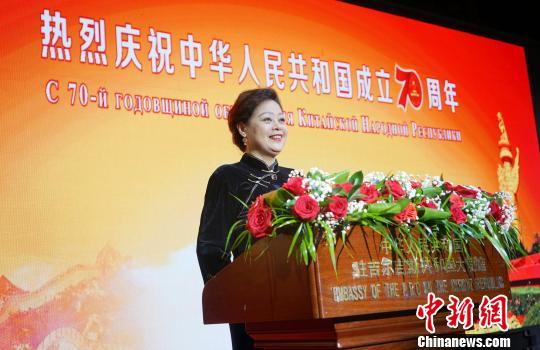 中华人民共和国驻吉尔吉斯共和国大使馆举行庆祝中华人民共和国成立70周年招待会,吉各界友人代表、各国驻吉使节、旅吉华侨华人代表出席。 陈鑫 摄
