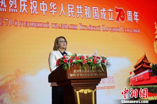 中华人民共和国驻吉尔吉斯共和国特命全权大使杜德文通过一系列数据对比,展现中华人民共和国成立70年来所取得的重要成就。 陈鑫 摄
