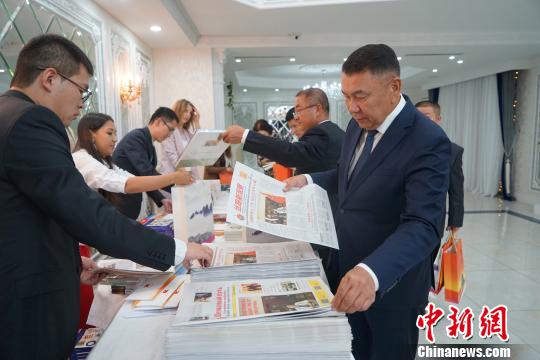 招待会现场还发放了展现中国政治、经济、社会发展成就的书籍和资料,以及体现中吉两国友谊和民心相通的报纸。 陈鑫 摄