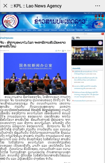 老挝国家通讯社当日还全文转载总台“国际锐评”的文章《中国有信心有能力战胜新疫情》,并发表社评称,在经历过2003年SARS后,中国政府建立起比较完备的突发、新发传染病防控体系,积累了大量的实践经验。相信凭借着举国上下的全力支持,凭借开放的国际交流合作,中国政府与民众一定能战胜此次疫情。