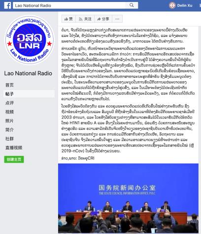 当天,老挝国家通讯社官网转载总台消息《中国将就新型冠状病毒感染的肺炎疫情进一步增强国际交流合作》,并发表评论称,中国政府第一时间启动疫情防治,并迅速判定新型冠状病毒的来源,足见政府和医护人员的专业与高效。