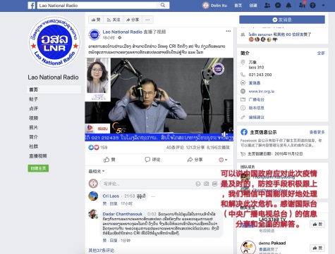 同日,老挝国家电台晚间黄金档节目《看天下》与中央广播电视总台老挝语记者赵晓虹进行直播连线。赵晓虹详细介绍了中国疫情防控的现状,中国与其他国家分享病例数据,积极开展国际合作,并采取防控措施避免病毒扩散等最新进展。该节目还通过电台的社交平台账号同步直播,获得老挝网友高度关注。
