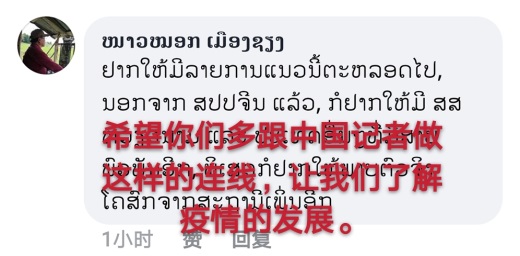 △网友瑙莫·孟翔表示非常喜欢这种形式的节目,希望多多连线中国记者,让更多的老挝民众了解疫情进展。
