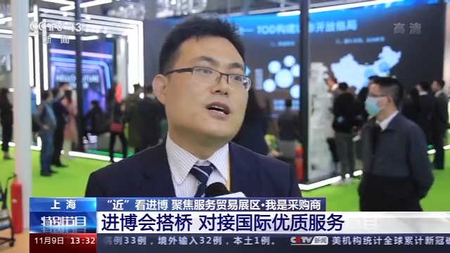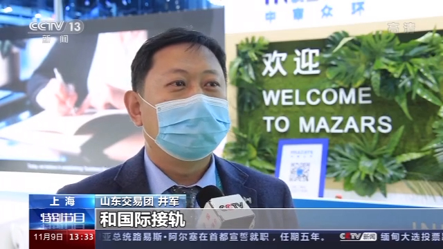 山东交易团 井军:和国际接轨是我们这次来第三届进博会的主要原因,像银行、物流对我们的支持以及审计财务和国际接轨,是为了增进我们企业后期的发展。物流这一块我们考虑的是能不能给客户提供最快的服务,疫情期间,好多东西流通慢了,我们想直接对接能快一些,像我们现在的一些冷链、集装箱的运输,在海上的运输要40多天,如果能缩短的话,找到其他的运输方式,这一部分需要了解。