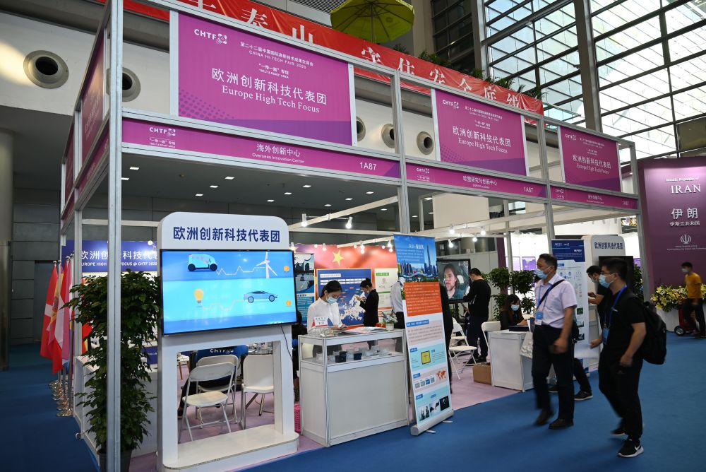 “一带一路”专馆和外国团组展区里的欧洲创新科技代表团。新华社记者王丰 摄