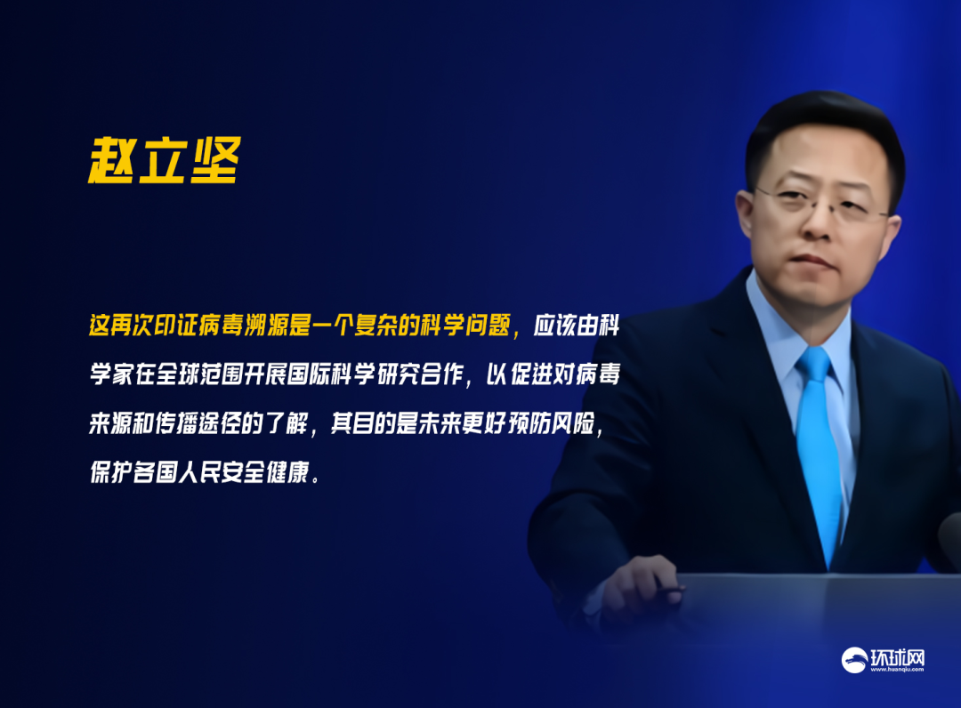 赵立坚称,病毒溯源是一个持续发展的过程,可能涉及多国多地。中方希望各国都采取积极态度,加强同世卫组织的合作。中国也将加强同世卫组织的合作,积极参与,并与国际社会一道,为全球病毒溯源作出贡献。
