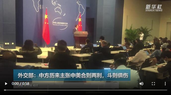 【简介】外交部发言人赵立坚16日表示,推动中美关系健康稳定发展,符合两国人民的根本利益,也是国际社会的共同期待。中方历来主张,中美合则两利,斗则俱伤,合作是双方唯一正确的选择。