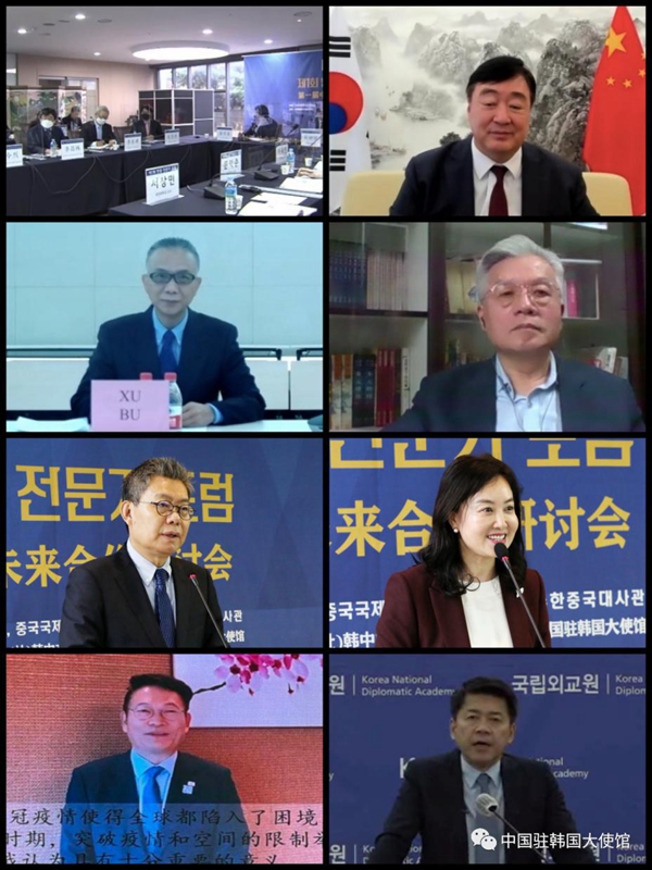11月17日,中韩两国专家学者及外交一线人员在线出席首届“中韩未来合作研讨会”。(图片来源:中国驻韩国大使馆微信公众号)