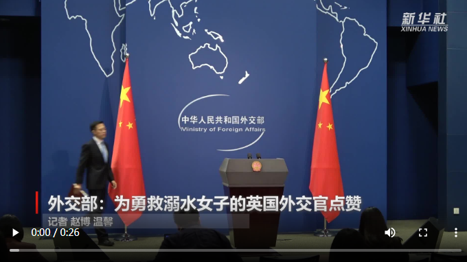 【简介】针对有报道称一名英国驻华外交官近日救起溺水中国女子一事,外交部发言人赵立坚17日说:“我们看到了有关媒体报道,这种见义勇为的举动值得赞扬。我要给他点个大大的赞。”