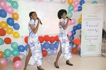 为庆祝中国和斐济建交45周年,中国驻斐济大使馆与南太平洋大学孔子学院28日举行了中斐友谊杯歌唱比赛,一对斐济双胞胎姐妹获得冠军。