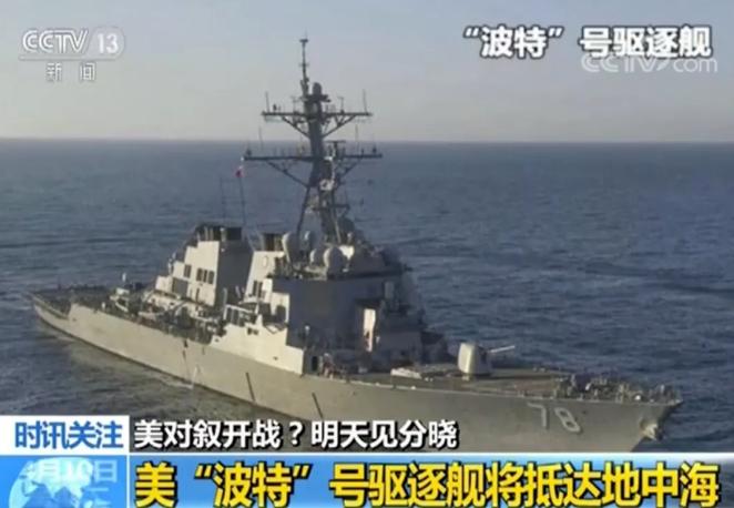 据美国《华尔街日报》援引美国国防部官员的话说,目前美国在地中海东部已经有唐纳德·库克号导弹驱逐舰,而第二艘驱逐舰波特号可能在几天后抵达,这两艘驱逐舰可以在那里参与对叙利亚的任何军事打击行动。