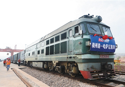 2017年7月27日,在江西省赣州市南康区赣州港,“赣州港至哈萨克斯坦”中欧班列等待发车。新华社记者 彭昭之摄