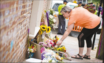 今年8月12日是美国弗吉尼亚州夏洛茨维尔“白人至上”骚乱一周年。图为11日,在美国夏洛茨维尔市,一名妇女摆放花束悼念去年骚乱中的遇难者。新华社发