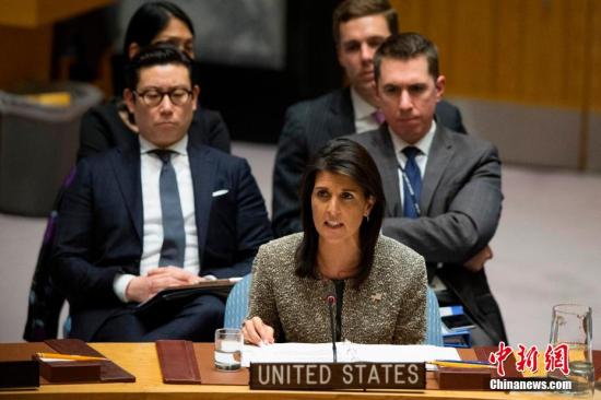 资料图:黑莉在联合国总部发言。中新社记者 廖攀 摄