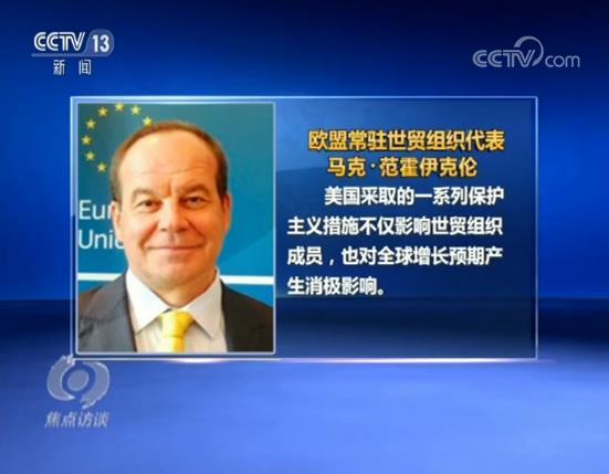 欧盟常驻世贸组织代表马克·范霍伊克伦表示,美国采取的一系列保护主义措施不仅影响世贸组织成员,也对全球增长预期产生消极影响。