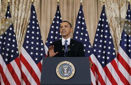 △2011年5月,时任美国总统奥巴马在国务院演讲时阐释其中东和北非政策