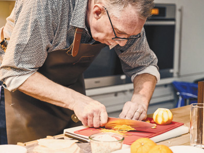 2020年1月,德国汉堡一家美食杂志举办“刀工大师”评选比赛,所用工具来自三叉刀具系列。图为参赛厨师在现场展示刀工。