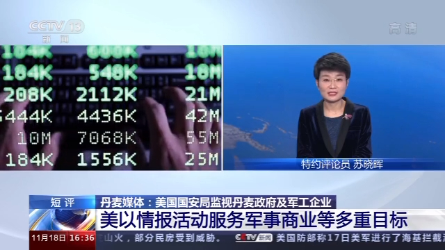 央视特约评论员 苏晓晖:确实我们会看到美国是执迷于情报活动,而且是不断地在进行着技术上的提升、手段上的更新。美方的做法是为了现实的利益,不管是在军事层面还是在商业层面,美国通过情报方面的活动已经在获得实实在在的好处。我们看到美国对丹麦进行监听的同时,也在通过与丹麦之间的相互协作来获取其他国家的情报信息。那么这一系列的信息收集,美国认为对于自己应对战略对手,尤其是俄罗斯,在相关地区的影响至关重要的。另外我们也会看到美国对丹麦的监听更多的是服务于一些非常直接的目标,包括在自己战机的采购过程中,当对方有一些游移的时候,美国希望通过监听获得更加直接的信息,来了解盟友的动向,最终来进行政策上的调整。这一系列动向,其实已经在破坏全球信息安全。