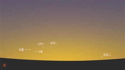 6月24日黄昏时分水星和其他亮星相对位置示意图作者供图