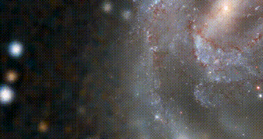 报道称,这一个超新星代号SN 2018gv,距离地球约7000万光年,位于船尾座的NGC 2525棒旋星系,由日本业余天文学家板垣公一于2018年1月首度发现,哈伯望远镜同年2月开始观测。后来,天文学家将拍摄到的照片组合在一起,制成缩时视频。