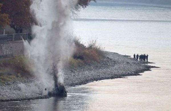 资料图:在莱茵河发现的未爆炸弹被起爆。(视频截图)