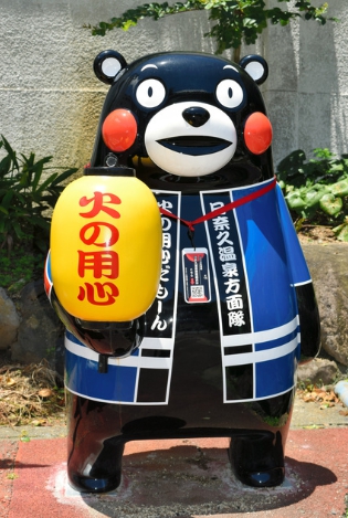 呼吁人们注意防火的熊本熊像。(图片来源:《朝日新闻》)