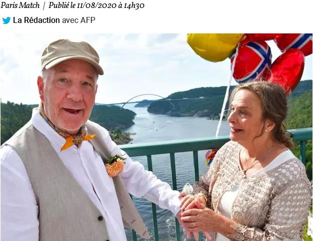 国际在线专稿:综合法国《费加罗报》和《巴黎竞赛画报》8月11日消息,当地时间8月9日,北欧一对新人在挪威与瑞典边境大桥上举办了婚礼。这对均已60多岁的新人在今年春天订婚,却因挪威与瑞典的防疫隔离措施一直无法举办婚礼。