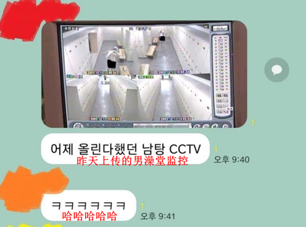 聊天成员将出现在监控画面中的男性顾客称为“韩男”(“韩男”是“韩国男性”的缩略语,在韩国是一种蔑视男性的称呼),并嘲讽他们的身材。群里也有人提出“澡堂为何会安装摄像头”,“女澡堂也有摄像头吗”等质疑。对此,上传照片的嫌疑人回应说,“虽然知道是非法的,但还是安装了”,“(这个澡堂)父亲经营好久了,所以就这样不管了”“如果不报警就没有问题”。