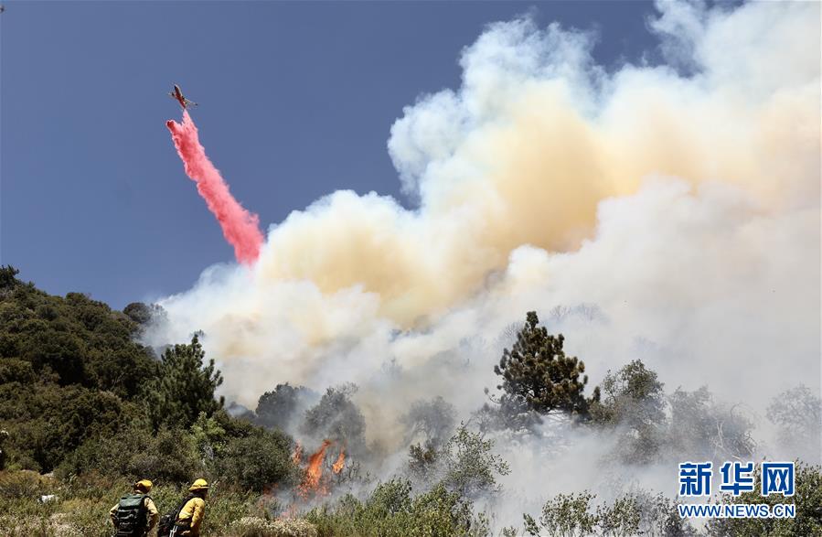 8月2日,灭火飞机在美国加利福尼亚州河滨县发生山火的地区喷洒阻燃剂。新华社发