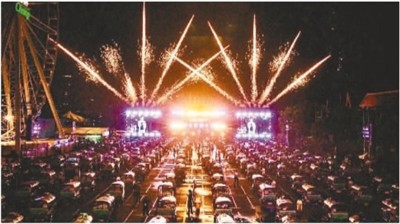 泰国标志性交通工具“嘟嘟车”(经过改装的机动三轮车)载着观众入场,取代了传统的座位。