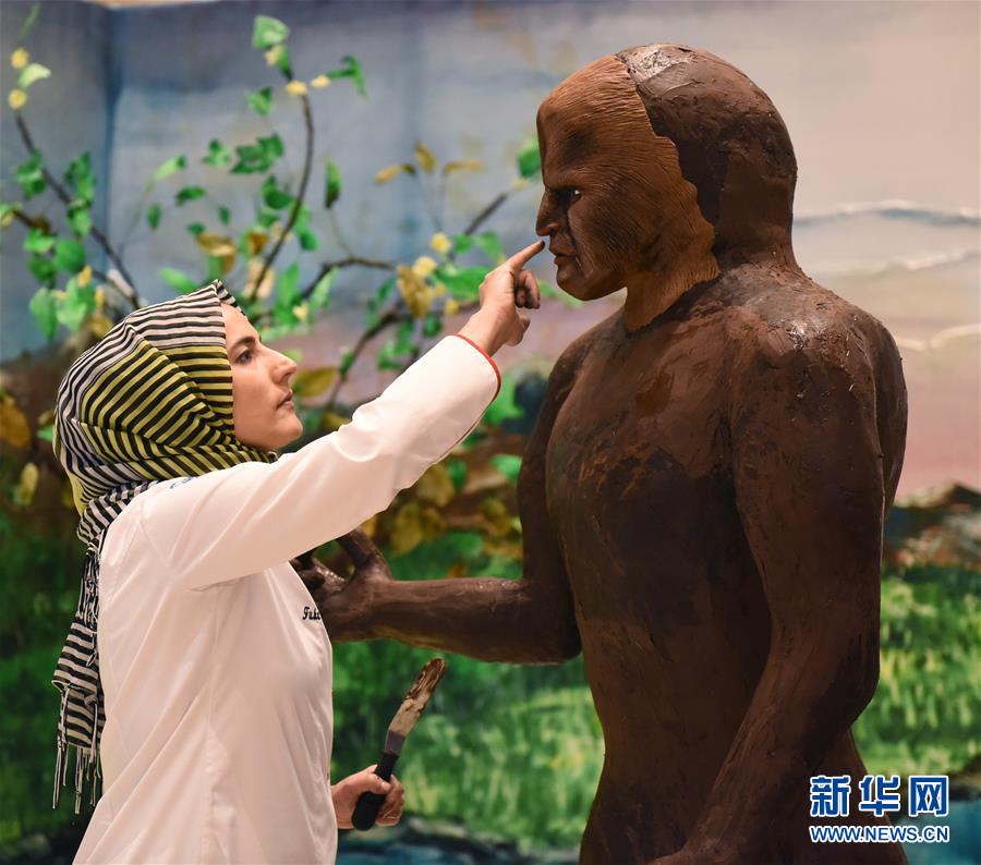 3月10日,在土耳其伊斯坦布尔,土耳其女糕点师图巴·格奇格在制作糕点作品“美女与野兽”中的“野兽”。