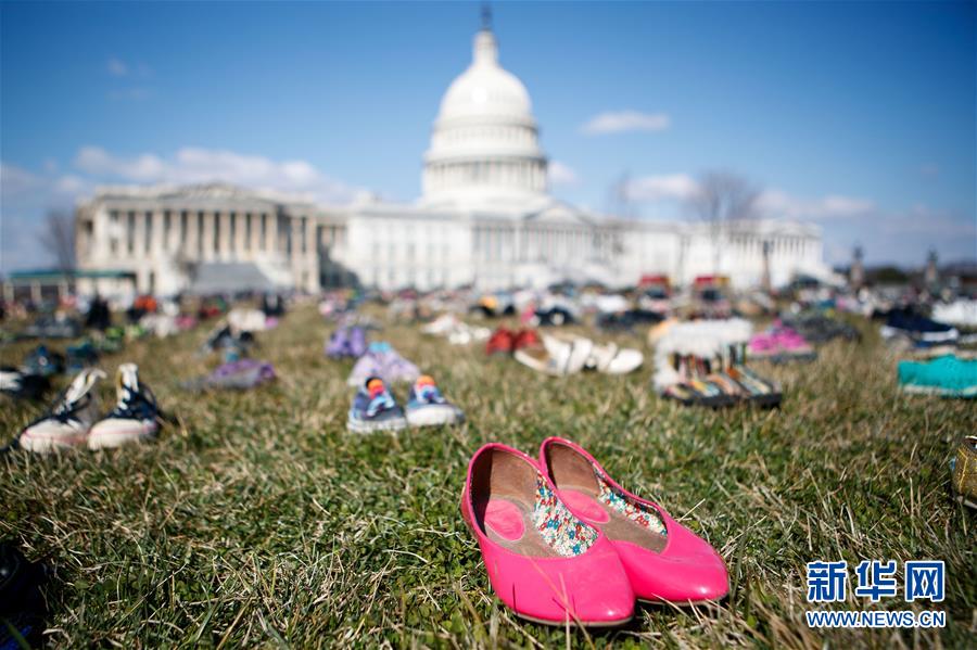 当日,7000双代表自2012年美国康涅狄格州桑迪胡克小学枪击案以来枪击事件中遇难儿童的鞋子摆放在华盛顿国会山前的草坪上。人们以这种无声的方式,抗议国会面对枪击频发现状的不作为,呼吁枪支改革以保障美国儿童的安全。