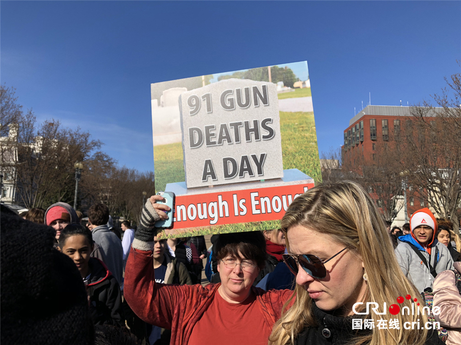游行学生在国会前高举标语抗议美国政府对校园枪支暴力管控不力。(摄影:刘坤)