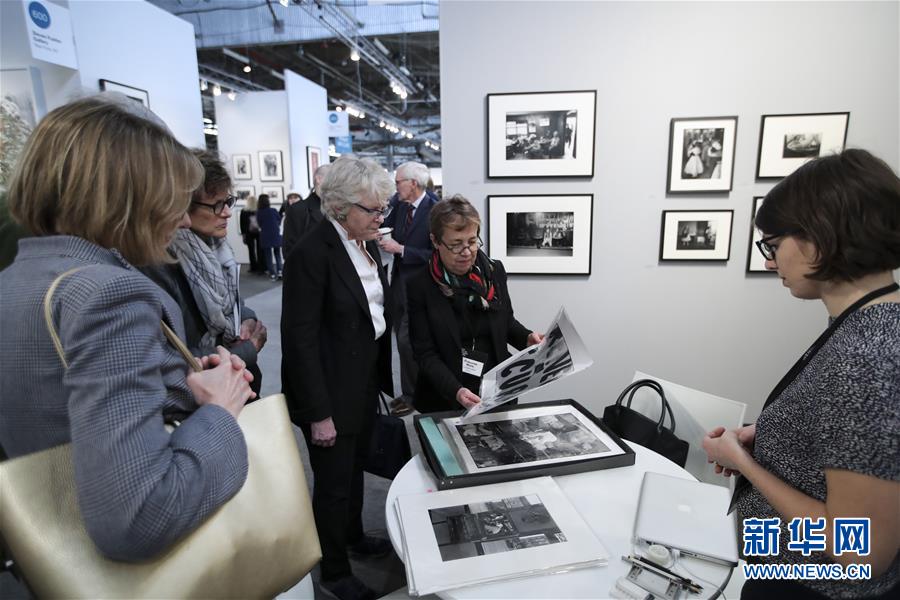 4月5日,在美国纽约举行的国际摄影艺术交易商协会(AIPAD)摄影展上,展商代表(中)向参观者介绍摄影作品。 AIPAD摄影展于4月5日至8日在纽约举行,来自世界各地的约100家展商参加了此次展会,带来众多19世纪以来不同题材的高质量摄影作品。新华社记者王迎摄