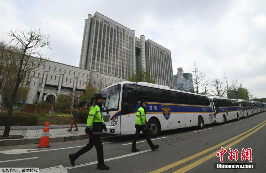 当地时间4月6日下午2时10分(北京时间下午1时10分),韩国首尔中央地方法院最后一次开庭审理前总统朴槿惠亲信干政案,此次庭审将朴槿惠作出一审判决。朴槿惠当天上午通过看守所提交答辩书称,不会出庭接受审判。韩国检方指控朴槿惠犯有18宗罪,请求法庭判处朴槿惠30年徒刑并处罚金1185亿韩元(约合人民币7亿元),其中15项指控已在审理幕后亲信崔顺实、前总统幕僚长金淇春等共犯时判定有罪,作为腐败案最主要人员和曾对擅政门负有最终责任的朴槿惠难免被判重刑。值得一提的是,庭审全程将向韩国全境现场直播,这将是韩国最高法院去年制定一、二审电视直播规定后首次在全国众目睽睽之下宣判的案件。图为警方在法院外巡逻。
