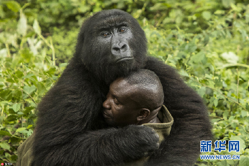 刚果大猩猩把饲养员揽进怀里熊抱