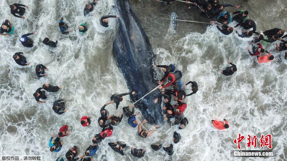 阿根廷旅游胜地现搁浅鲸鱼 民众救助但无力回天