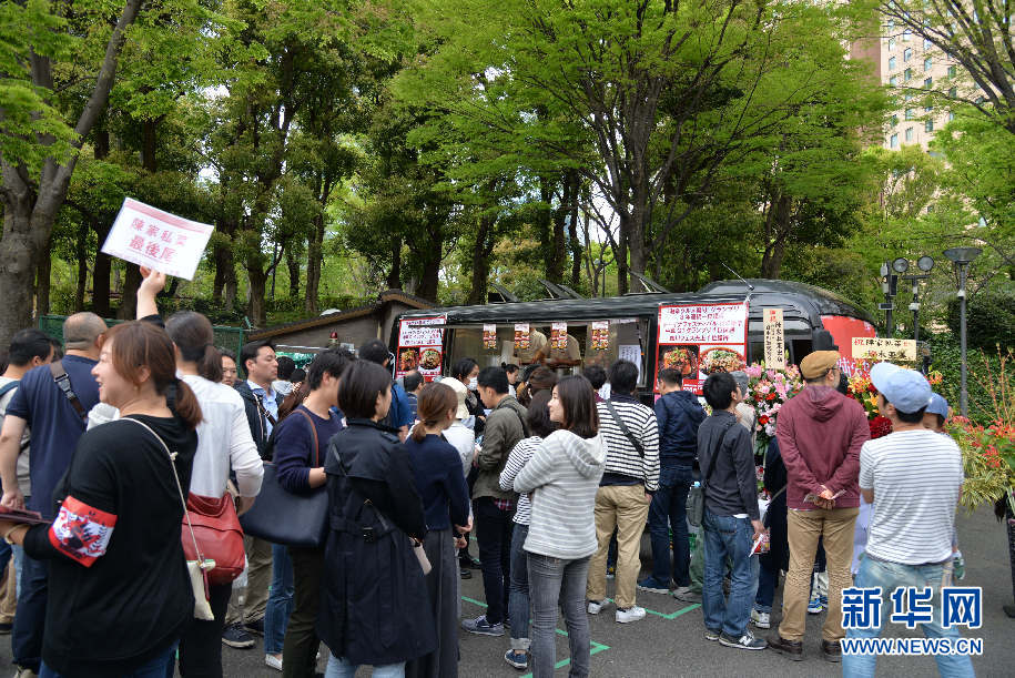 4月7日,日本东京新宿中央公园,人们争相排队品尝麻辣四川味。新华网记者姜俏梅 摄