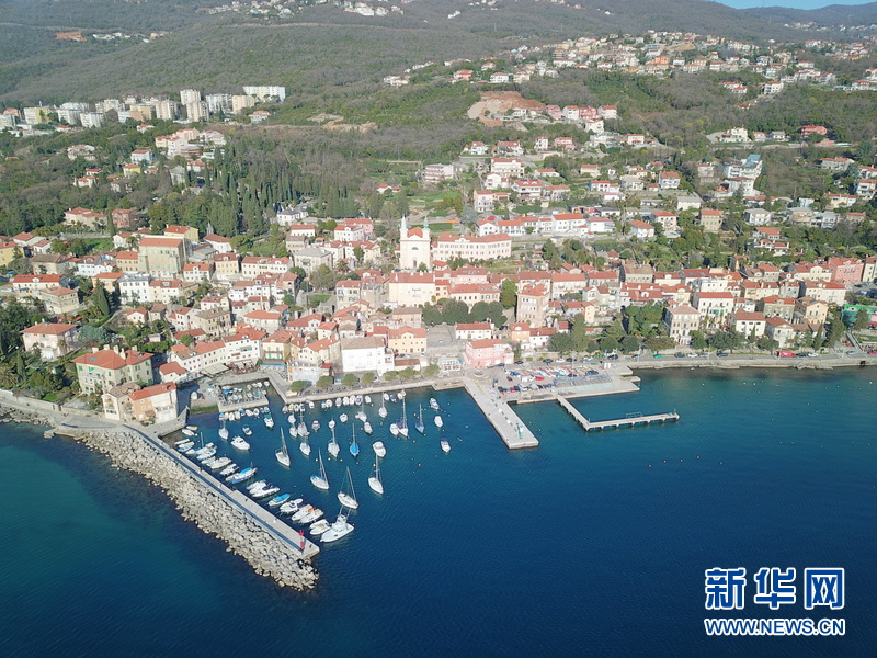 图为4月7日拍摄的克罗地亚海滨城市奥帕蒂亚海岸线风光。新华网记者高磊 摄